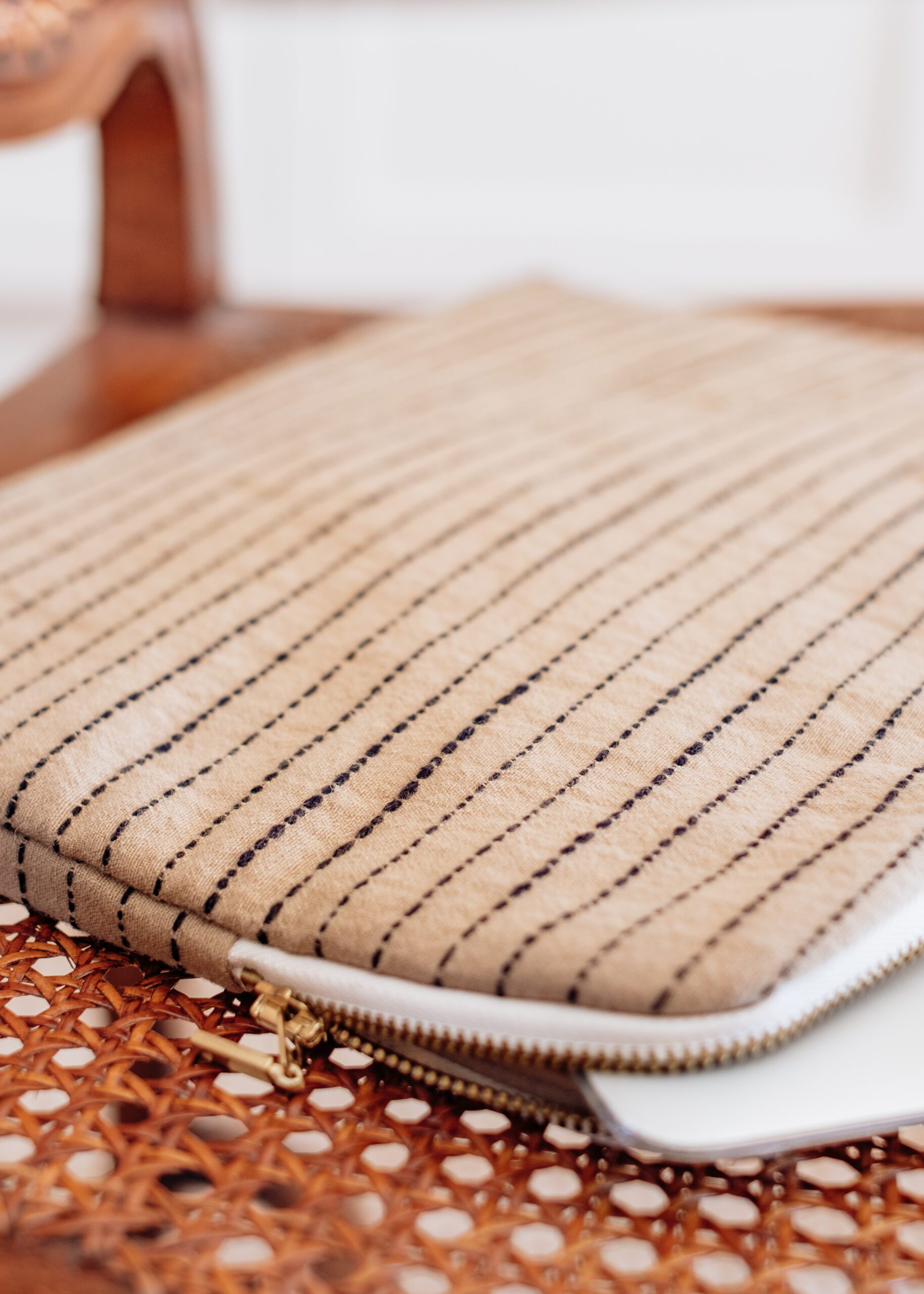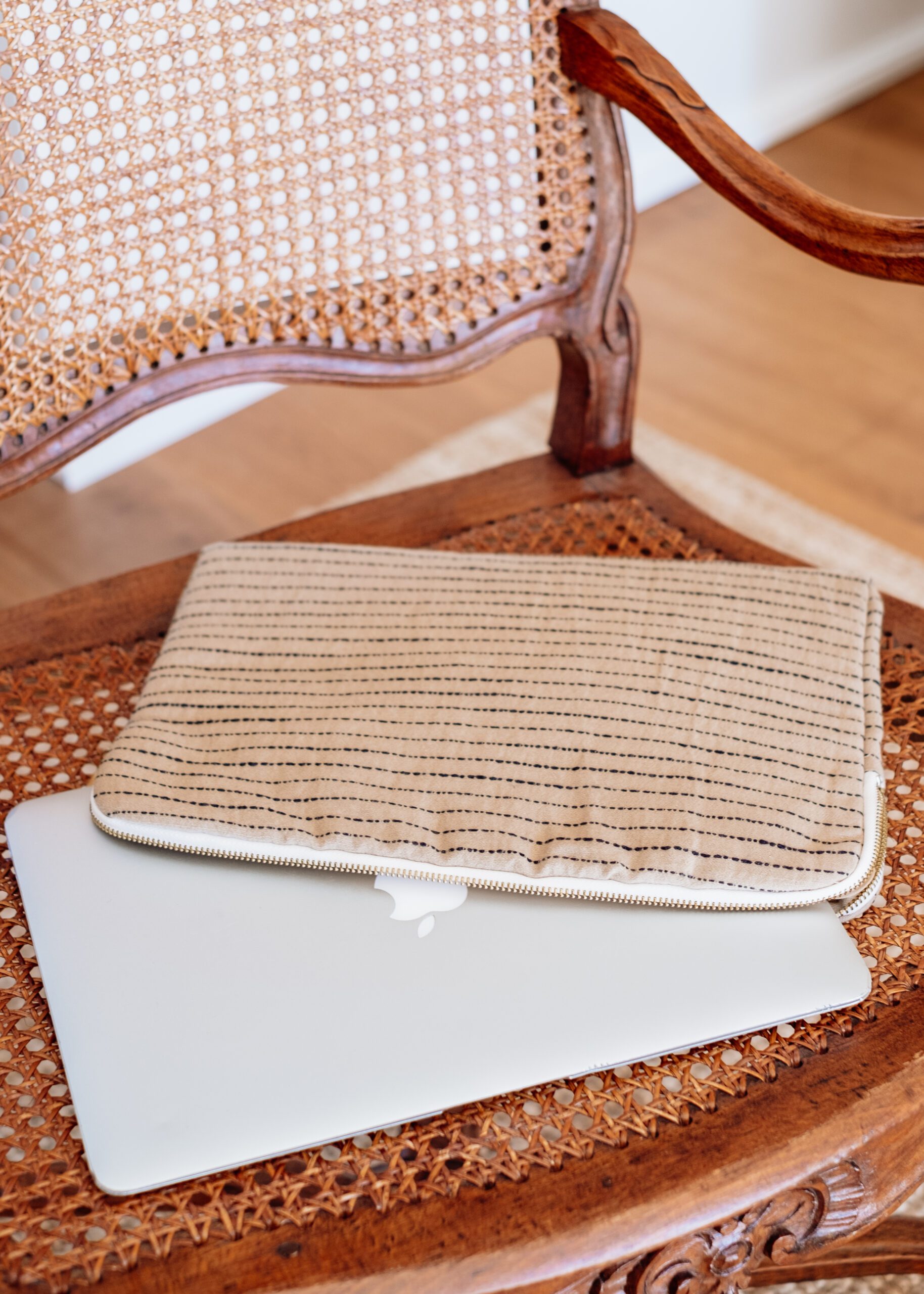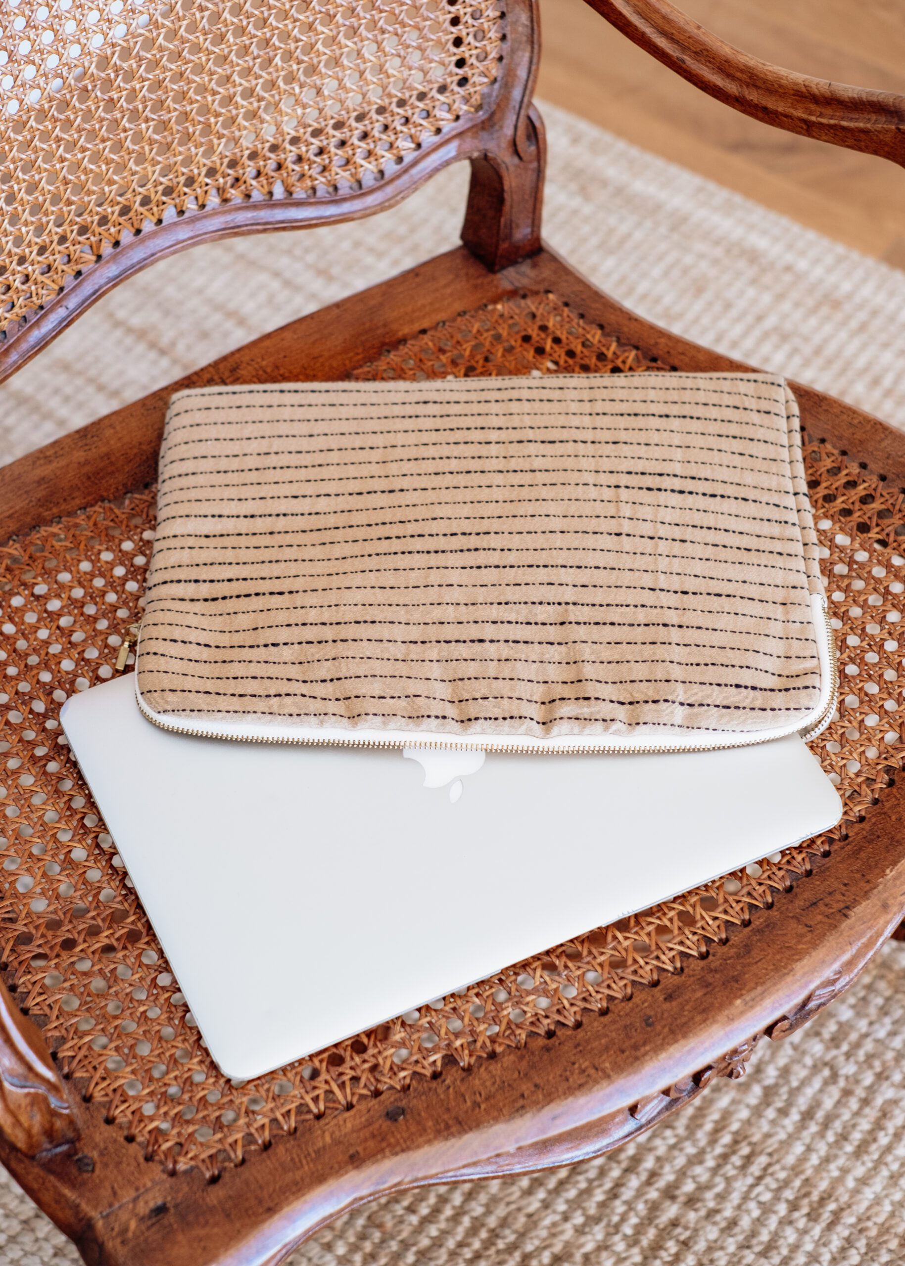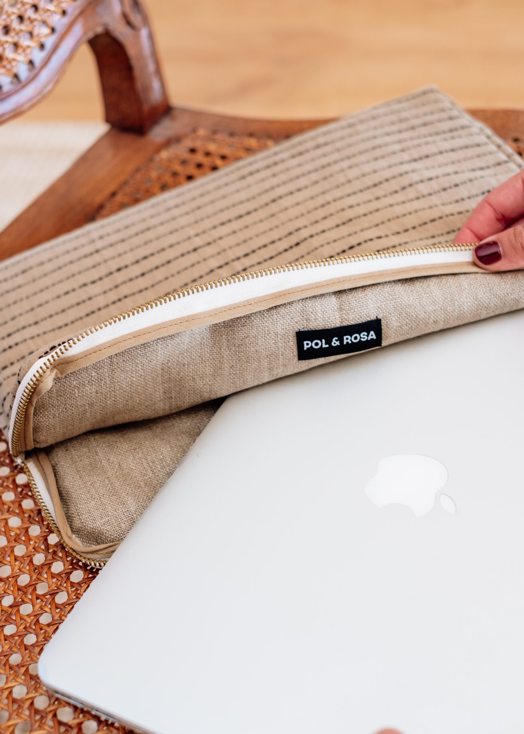 La housse d’ordinateur en laine et lin upcyclée est l’accessoire idéal pour protéger, mettre en valeur et transporter votre ordinateur.