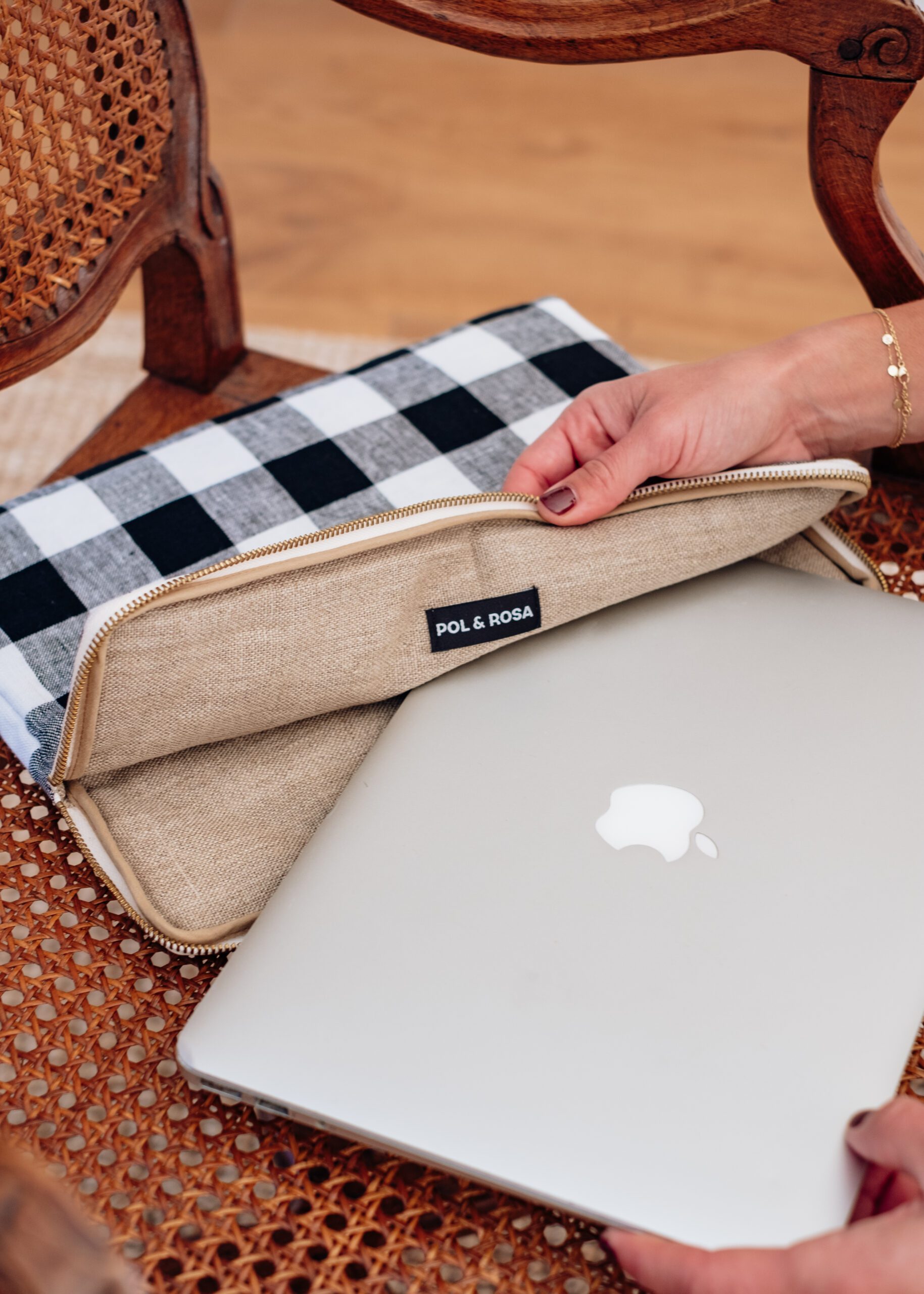 Voici les détails techniques de la housse d’ordinateur Vichy Noir et Blanc en lin: