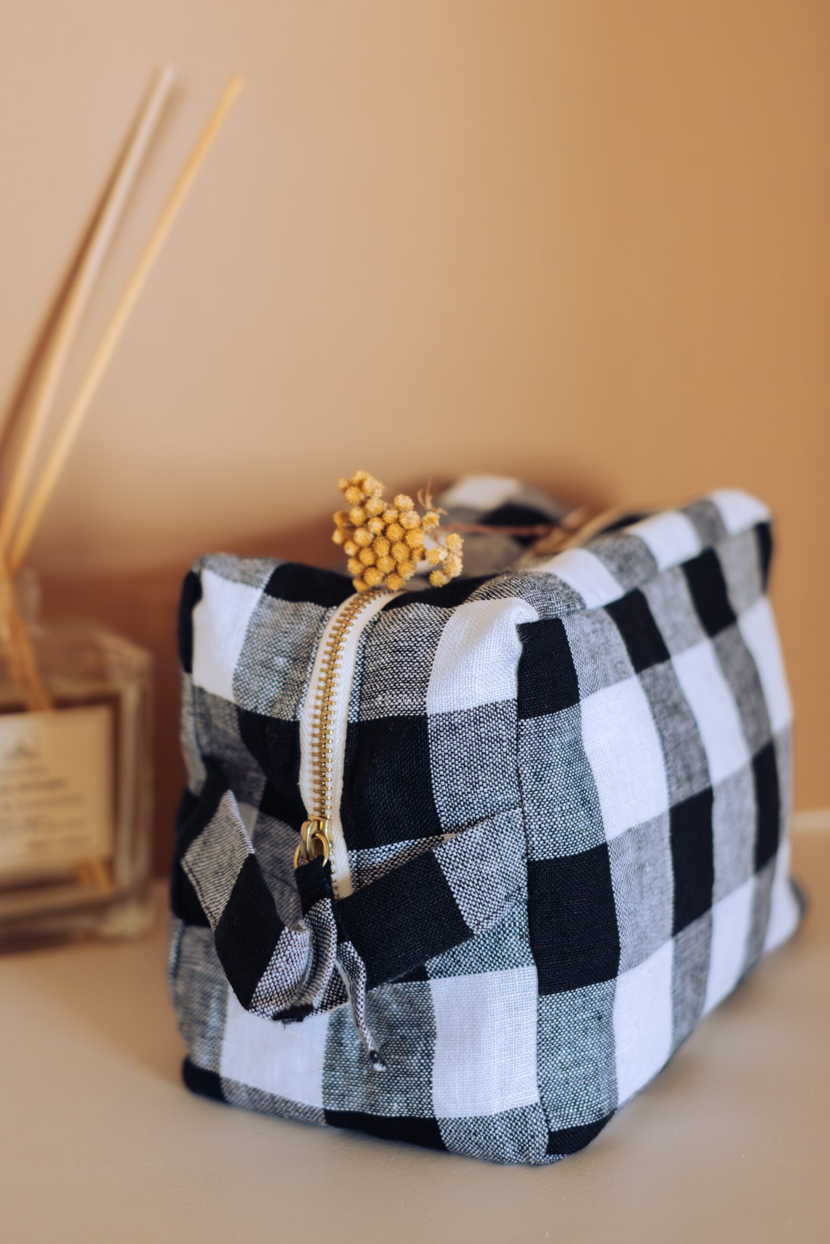 Voici les détails techniques de la trousse en lin Vichy :